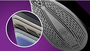 Stopa SteamGlide Advanced to nasza najlepsza stopa, która zapewnia płynny poślizg na dowolnej tkaninie. Jej podstawa ze stali szlachetnej jest dwa razy twardsza niż zwykłe aluminiowe stopy, a opatentowana 6-warstwowa powłoka z zaawansowaną tytanową warstwą z łatwością przesuwa się po tkaninie, pozwalając na szybsze prasowanie.