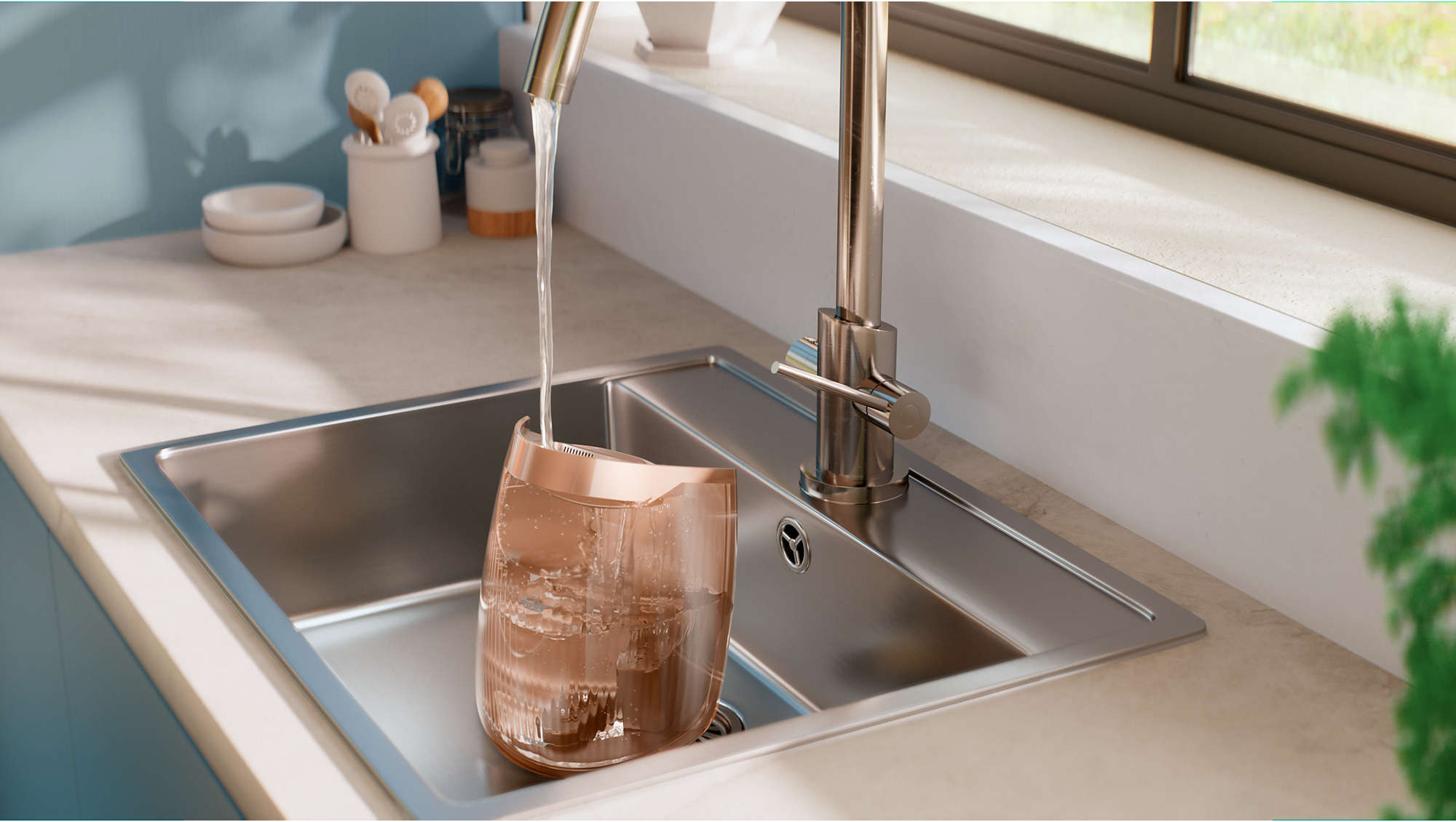 Do godziny nieprzerwanego prasowania dzięki dużemu zbiornikowi wody o pojemności 1,5 l. Gdy zbiornik wody jest pusty, zostaniesz poinformowany sygnałem dźwiękowym i świetlnym o konieczności uzupełnienia wody, co można łatwo zrobić pod kranem przez duże okienko do napełniania.