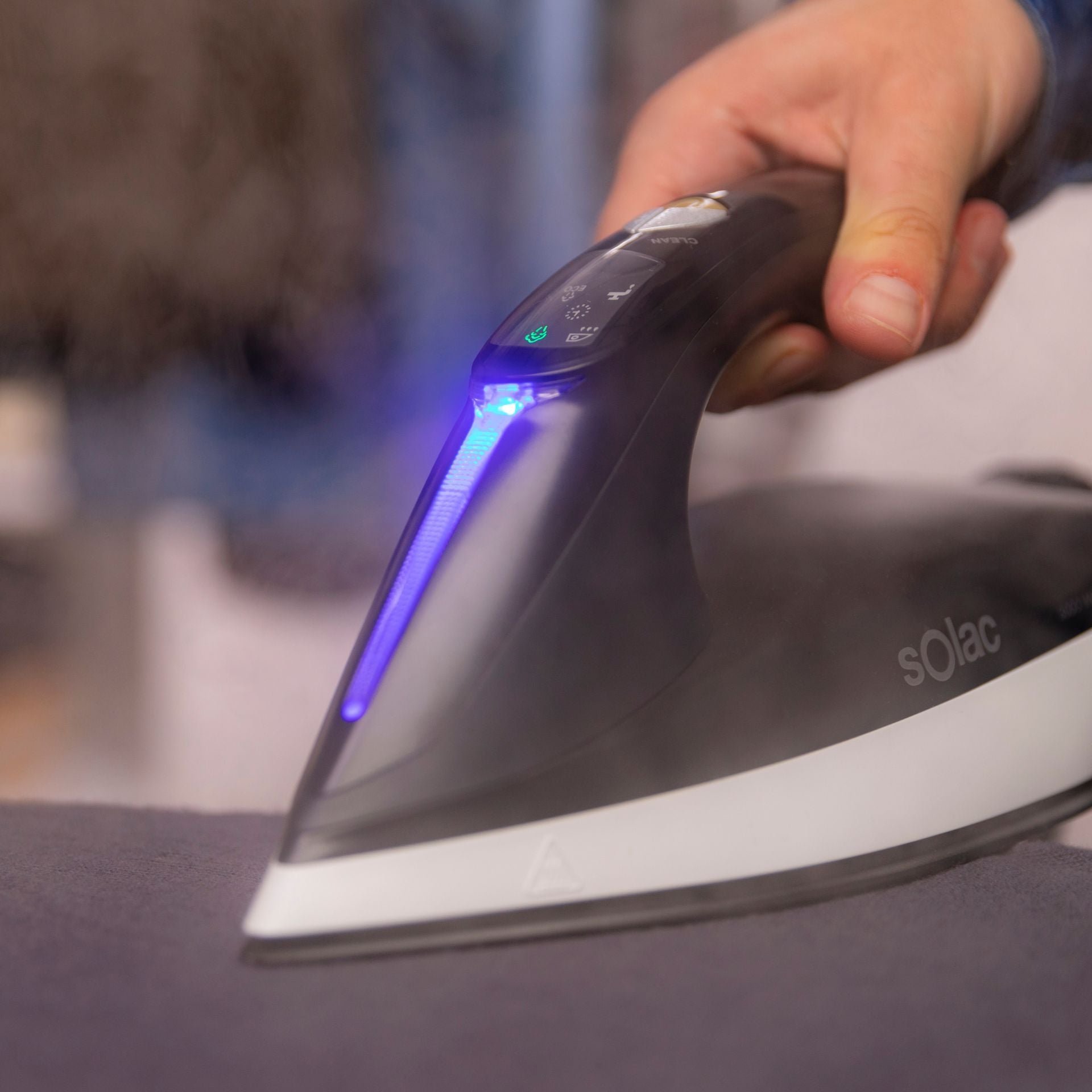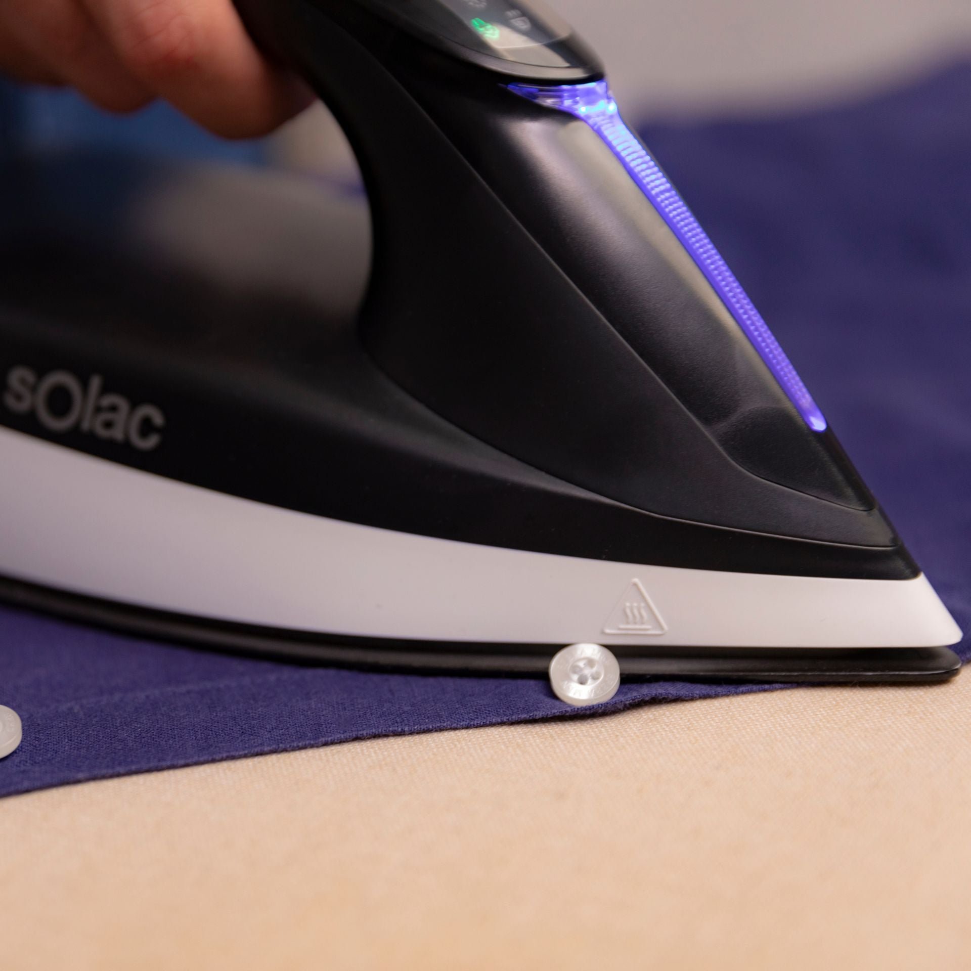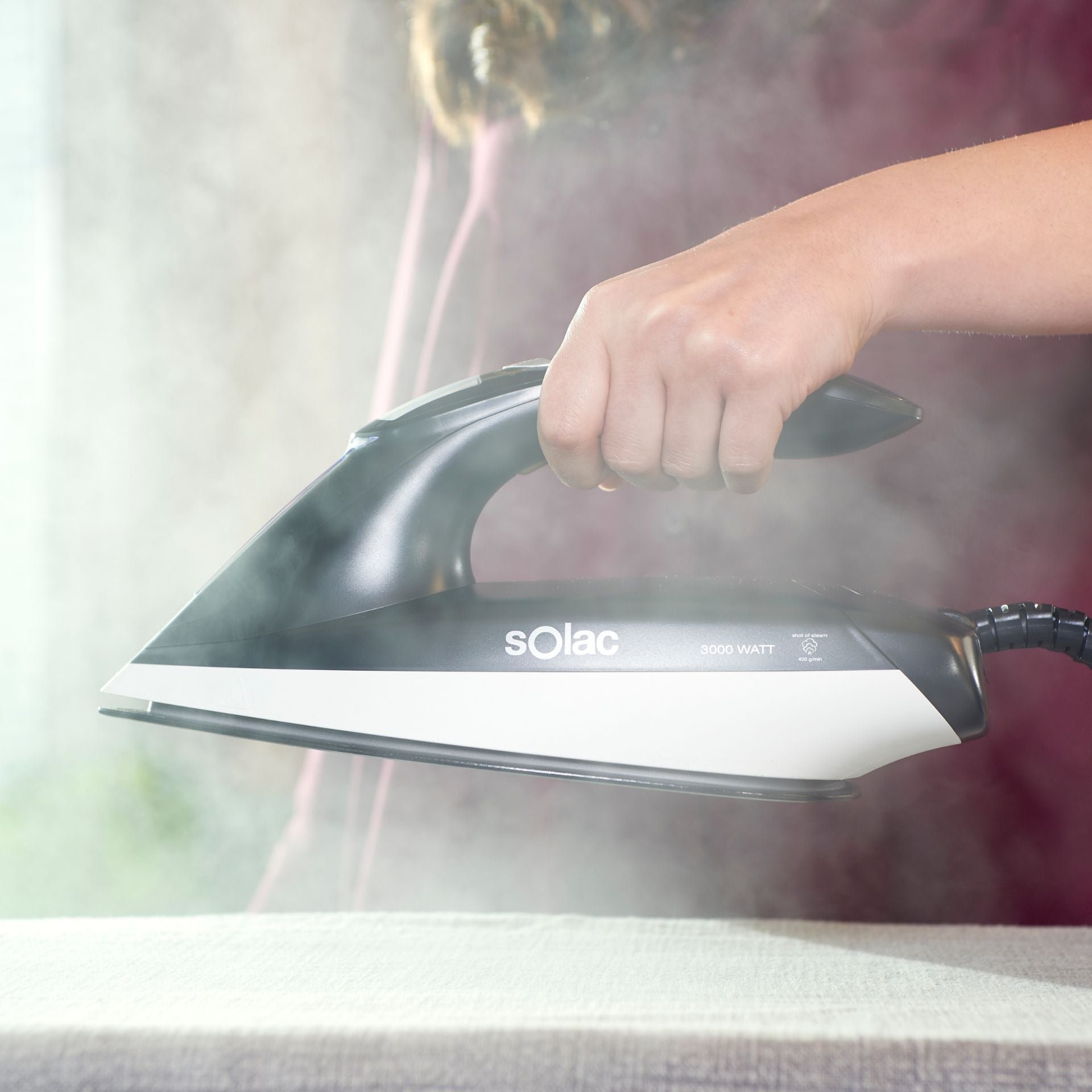 Żelazko wyposażono w ultrapoślizgową stopę ceramiczną, która optymalnie ślizga się po wszystkich rodzajach tkanin. Posiada precyzyjną końcówkę ułatwiającą docieranie do trudnodostępnych miejsc, jak okolice guzików czy mankiety. Konstrukcja samego żelazka jest ergonomiczna i lekka, idealnie dopasowuje się do dłoni, zapewniając pełną swobodę ruchów. Urządzenie posiada również zabezpieczenie przed kapaniem.