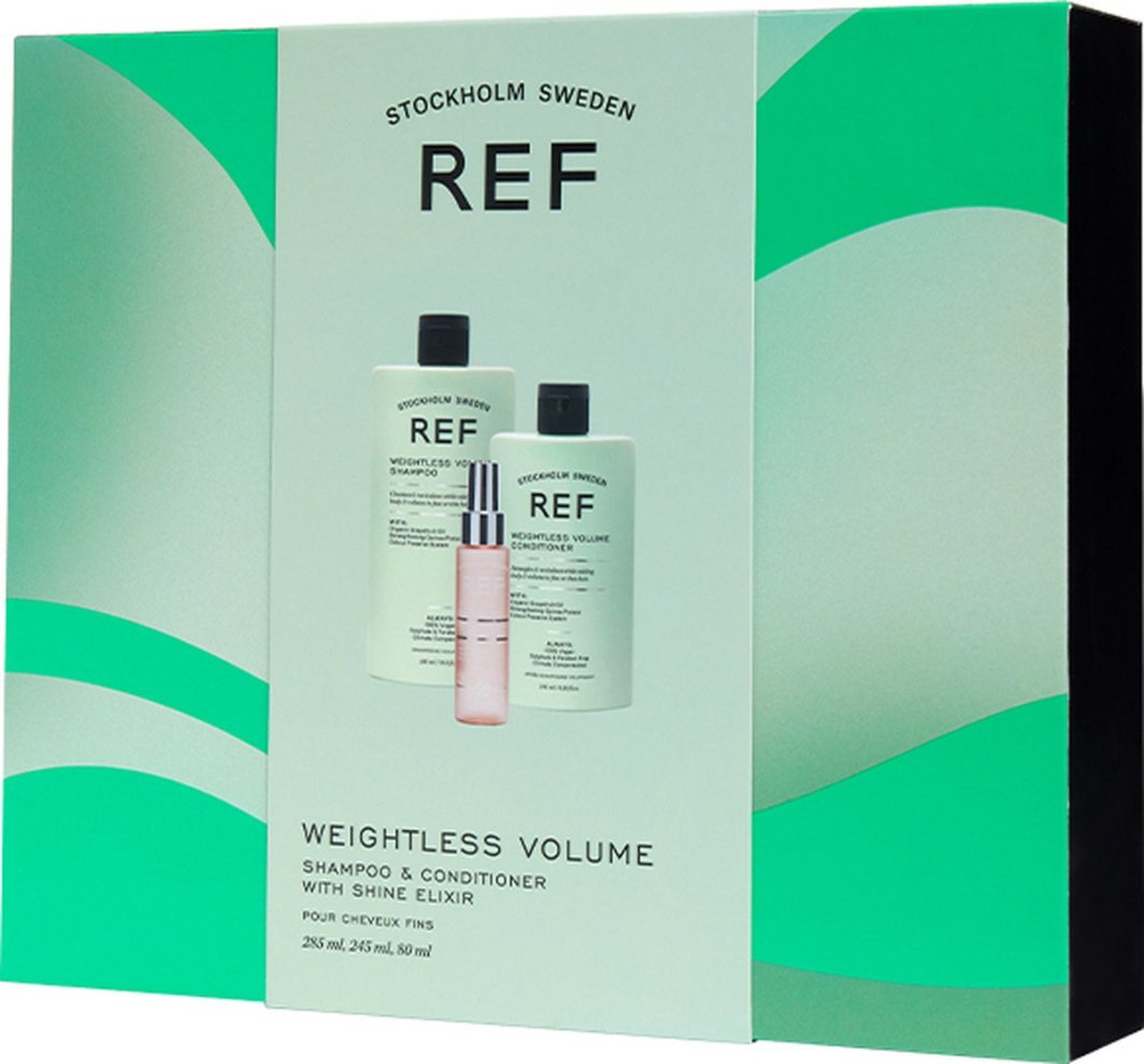 Gift Box Set Ref Stockholm: Weightless Volume Hair Shampoo, Texturizing & Volumizing, 285 ml + Weightless Volume Hair Conditioner, Smoothens & Volume, 245 ml + Shine Elixir, Hair Serum, Softening, 80 ml Unisex