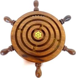 Gra zręcznościowa - kulki w labityncie GMS-0159 Wykonane z palisandru indykskiego zwanego inaczej drewnem różanym. Wymiary: średnica 22.5cm, wys. 2 cm Celem gry jets wprowadzenie wszystkich kulek do centrum labiryntu