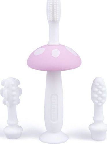 GiliGums Szczoteczka Grzybek różowa 3w1 12m+ Cechy produktu : ✔️ wypustki do masowania dziąseł ✔️ zróżnicowane faktury ✔️ wykonana z silikonu ✔️ 3 wymienne końcówki różniące się kształtem i rozmieszczeniem wypustek ✔️ delikatnie czyści pierwsze ząbki ✔️ wiek: 12m+ ✔️ wymiary: ok. 11,5 cm x 4,2 cm x 4 cm (średnica) Szczoteczka – grzybek umili maluchom czyszczenie pierwszych ząbków! W zestawie znajduje się wygodna w trzymaniu rączka ozdobiona grzybkowym kapeluszem i trzy wymienne końcówki, różniące się kształtem i rozmieszczeniem wypustek. Szczoteczka jest wykonana z bezpiecznego, higienicznego silikonu, dzięki czemu bez trudu wyczyścisz ją po każdym użyciu. Produkt przeznaczony dla dzieci od 12 miesiąca życia.