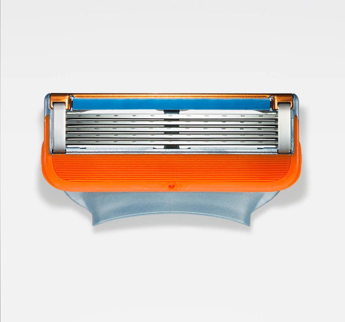 Technologia pięciu ostrzy Gillette Fusion Power zapewnia wygodne i precyzyjne golenie. Wkłady ustawione są o 30% bliżej siebie niż w maszynce MACH3. Precyzyjny trymer jest idealny do golenia trudno dostępnych miejsc. Ulepszony pasek wskaźnikowy Lubrastrip, nasączony witaminą E, aloesem i naturalnymi olejkami sygnalizuje moment, gdy wkłady wymagają wymiany.