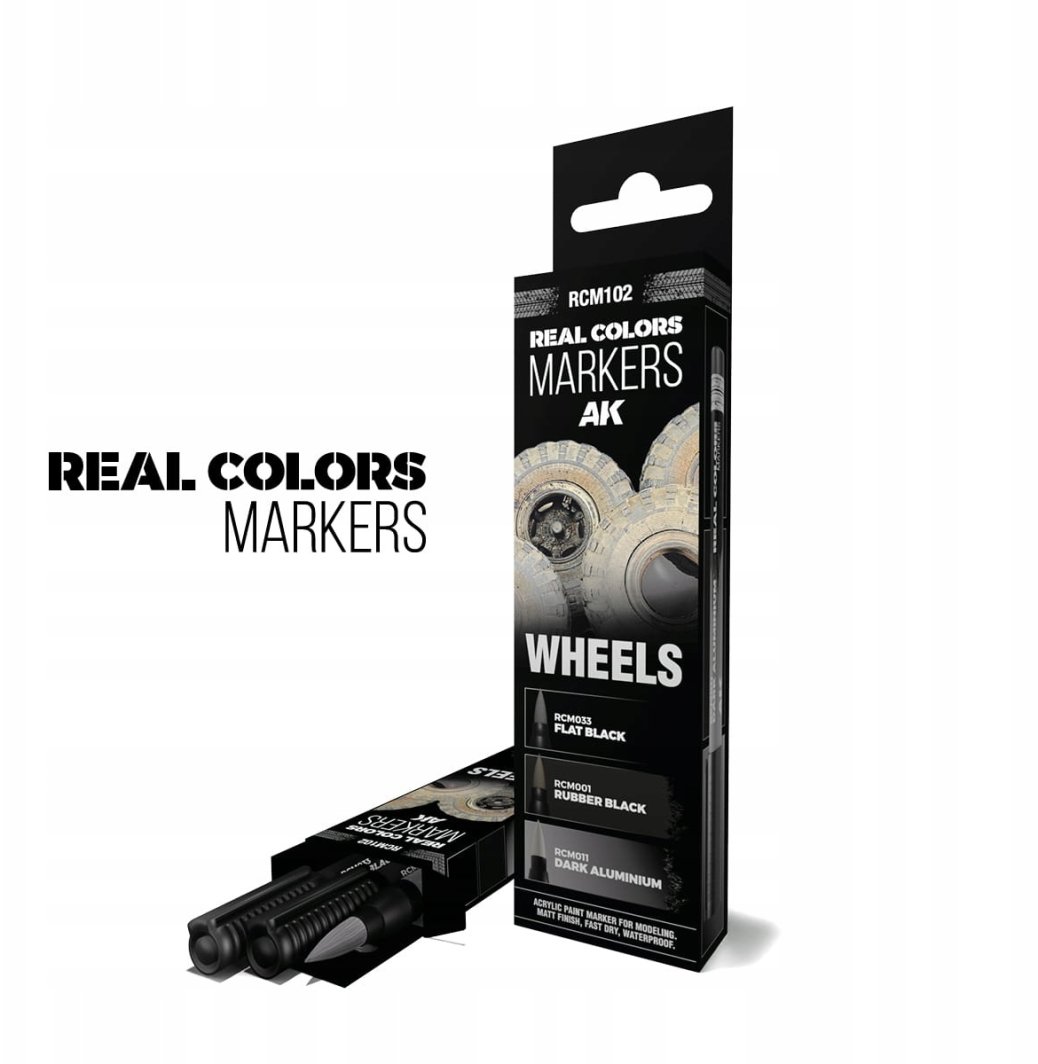 Zestaw markerów AK Interactive RCM102 Real Colors Markers Set: Wheels to znakomite narzędzie dla każdego pasjonata modelarstwa. Zawiera trzy kolory farb akrylowych, które doskonale nadają się do malowania kół, gumowych elementów gąsienic oraz różnorodnych akcesoriów. Dzięki nim Twoje modele zyskają wyjątkowy wygląd i szczegółowość.