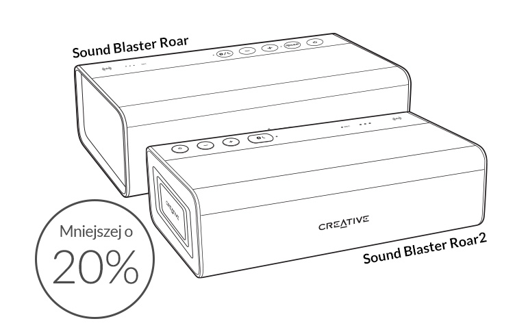 ![]() | Mniejszej o 20% Głośnik Sound Blaster Roar to arcydzieło inżynierii akustycznej. Tworząc Sound Blaster Roar 2, po raz kolejny przesunęliśmy granice, aby zmieścić te same elementy w mniejszej o 20%1 obudowie. Jednakże wysokiej jakości basy wymagają dużej przestrzeni. Tym razem przestrzeń dostępna w obudowie była o wiele mniejsza, przez co nasi inżynierowie musieli wręcz zaprzeczyć prawom fizyki, aby dźwięk wydobywający się z głośnika był tak samo zachwycający i wszechobecny, jak dźwięk z poprzedniego modelu Sound Blaster Roar. |