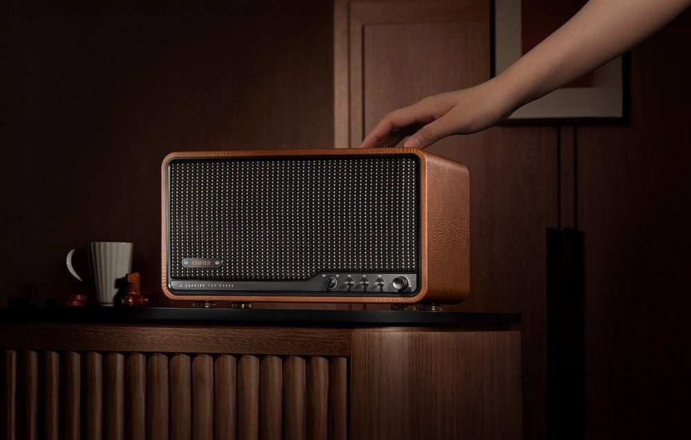 Zarządzaj muzyką poprzez ergonomiczne pokrętła na przednim panelu lub za pomocą dołączonego pilota. Możesz również skorzystać z aplikacji EDIFIER Home, aby zmodyfikować ustawienia, spersonalizować efekty dźwiękowe i zmieniać źródła.