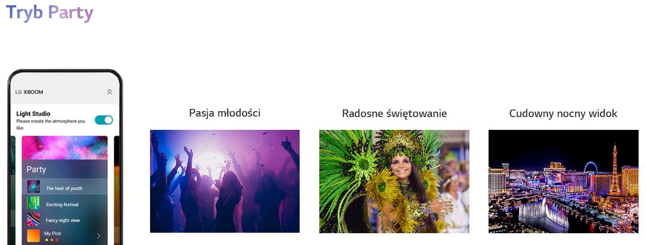 Oświetlenie głośnika XBOOM 360 – inspirowane życiem codziennym, festiwalami i naturą – odzwierciedla upływ czasu i tworzy odpowiedni nastrój w danej chwili. Każdy tryb oświetlenia precyzyjnie dostosowuje kolory, jasność i temperaturę barwową, aby zapewnić harmonię audiowizualną z otoczeniem.