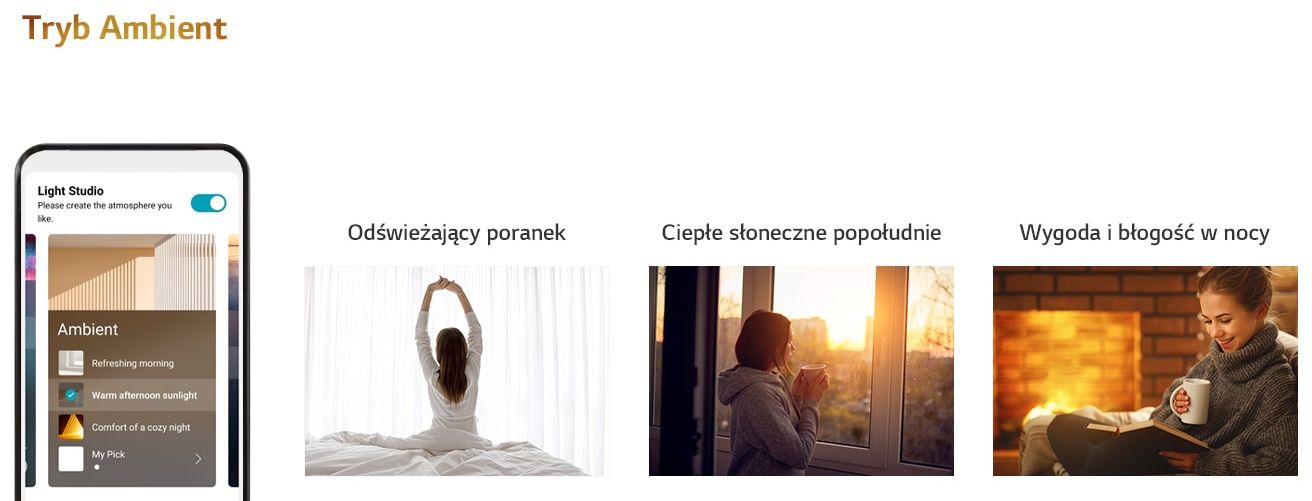 3 tryby oświetlenia nastrojowego z 9 gotowymi programami w różnym stylu. Wybierz gotowe ustawienie podświetlenia, aby stworzyć odpowiedni nastrój i sprawić, by Twoje chwile nabrały wyjątkowego charakteru.