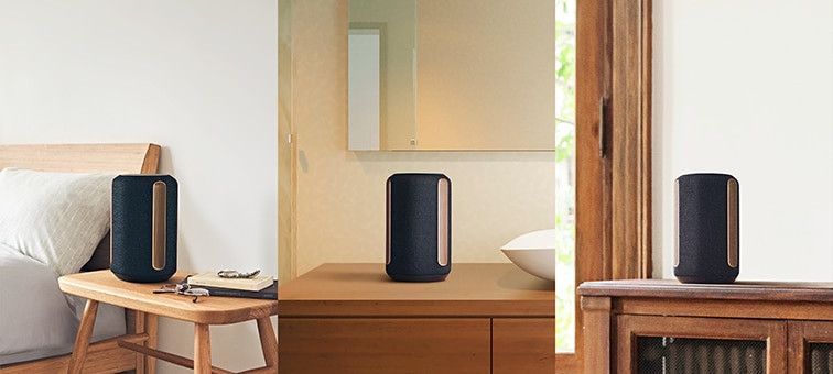 Głośnik RA3000 ma kompaktową konstrukcję i zajmuje mało miejsca, więc mieści się praktycznie wszędzie. Gdziekolwiek go umieścisz, automatyczna kalibracja i regulacja głośności zapewnią optymalne właściwości dźwięku.