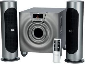 System 2.1 kanałów z wyświetlaczem ciekłokrystalicznym, aktywnymi głośnikami oraz efektem Super Bass Surround. Kontrola z poziomu pilota na podczerwień oraz panela. Pełna regulacja głośności, basów i sopranów. Ekranowane magnetycznie głośniki. SPECYFIKACJA TECHNICZNA: Liczba głośników 3 szt. Liczba głośników satelitarnych 2 szt. Głośnik niskotonowy Tak Moc głośników satelitarnych 2x10 Wat Moc głośnika niskotonowego 28 Wat Częstotliwość głośnika satelitarnego 150 Hz - 18 kHz Częstotliwość głośnika niskotonowego 40 Hz - 250 Hz Odstęp sygnału od szumu >=65dB. Głośniki - subwoofer: 5,25'' (8 Ohm), satelity - 2 x 3" (8 Ohm) + 1,5"' (4 Ohm) Wzmacniacz Tak Ekran antymagnetyczny Tak Napięcie zasilania 230 V AC Pilot w zestawie Tak Zasilacz zewnętrzny Nie Wymiary Subwoofer: 250 x 340 x 300 mm, Satelity: 120 x 120 x 375 mm Gwarancja/rękojmia 24 miesiące Cechy dodatkowe Wyświetlacz LCD