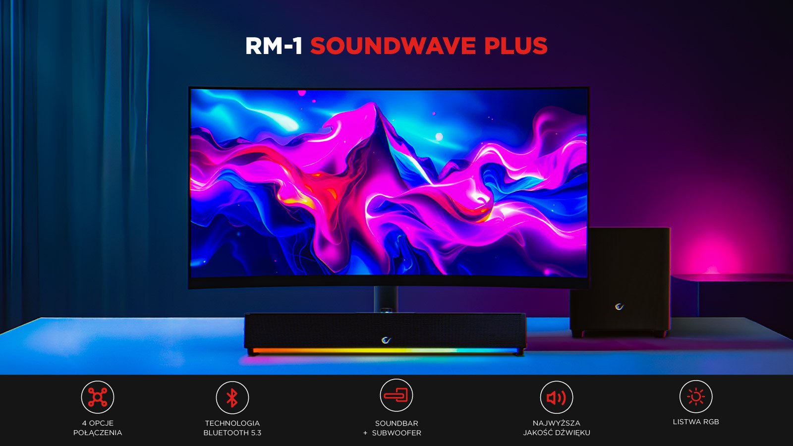 Dzięki całkowitej mocy 64 W RMS, RM-1 Soundwave Plus dostarcza mocne, czyste i szczegółowe brzmienie, które docenisz nie tylko w grach. Efekty eksplozji, kroki przeciwników czy filmowe ścieżki dźwiękowe brzmią wyraziście i przestrzennie – niezależnie od poziomu głośności.