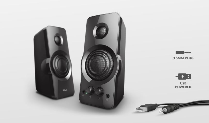 Głośniki nie wymagają zasilania sieciowego. Podłącz przez USB i ciesz się dźwiękiem wysokiej jakości.