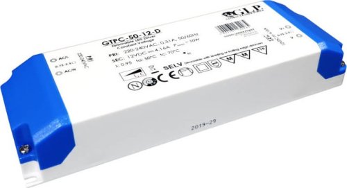 GLP GTPC-50-12-D charakteryzuje się wysoką wydajnością oraz niezawodnością. Klasa ochrony II oraz poziom ochrony IP20 zapewniają bezpieczeństwo użytkowania, co czyni go idealnym rozwiązaniem do różnych zastosowań.