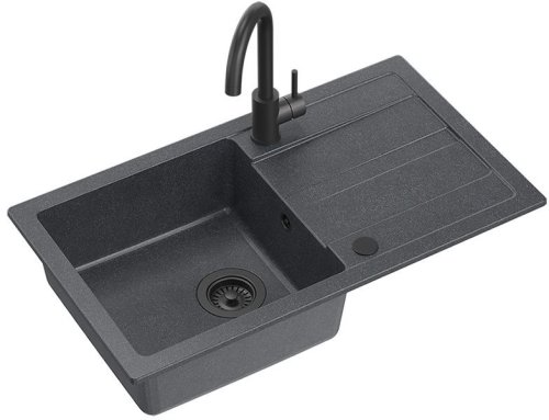GO- MAX CZARNY zlewozmywak granitowy 1-k z/o (77x44x17,5) + bateria very black + syfon manualny z zaślepką very black