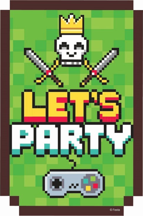 Zaproszenia urodzinowe lub na imprezę z napisem „Let’s Party” z kopertami. To również idealne zaproszenia na gaming party.