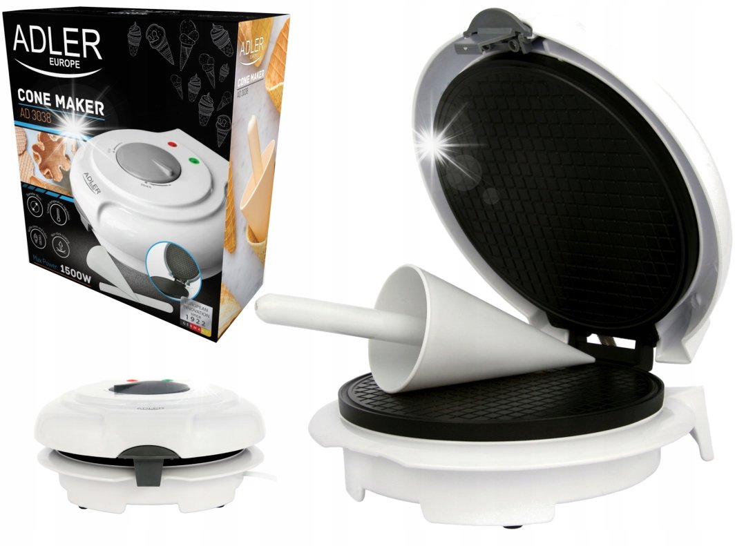 Gofrownica Adler Wypiekacz do wafli rurek rożków miseczek nieprzywierające płyty mocny 1500W