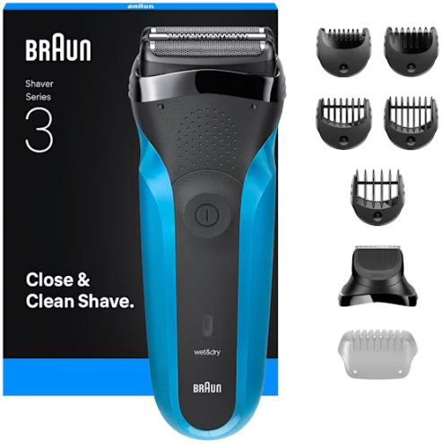 Maszynka foliowa Braun Series 3 310BT ma szerokość 57 mm, głębokość 156 mm i wysokość 48 mm, a jej waga wynosi 175 g. W zestawie znajduje się również osłona ochronna oraz pięć grzebieni do regulacji długości przycinania.
