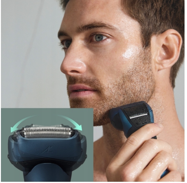 Aby zmniejszyć liczbę ruchów potrzebnych do wykonania dokładnego golenia, dwukierunkowe ruchy głowicy (w lewo i w prawo) i 3 pojedyncze ruchome ostrza dopasowują się do konturów twarzy i szyi bez konieczności mocnego naciskania, co minimalizuje podrażnienie skóry.