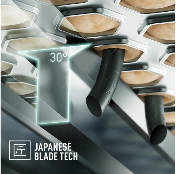 Wszystkie ostrza i folie są wykonane ze stali nierdzewnej klasy chirurgicznej w oparciu o sztukę japońskiej tradycji wytwarzania mieczy samurajskich. Opracowaliśmy najostrzejsze wewnętrzne ostrza Panasonic, które są nanoostrzone w celu uzyskania kąta o wartości zaledwie 30 stopni. Z kolei wytrzymałe folie ze stali nierdzewnej zostały zaprojektowane z myślą o latach delikatnego golenia. Oznacza to, że mogą skutecznie przycinać najgrubszy zarost przy minimalnej liczbie pociągnięć, przez co skóra nie jest drażniona.