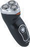 Golarka męska zasilana akumulatorowo-sieciowo, o mocy 3 W, w kolorze czarnym, z głowicą z 3 ostrzami, wbudowanym trymerem do pielęgnacji wąsów, brody, brwi, baczków oraz ze szczoteczką do czyszczenia, futerałem i zasilaczem.