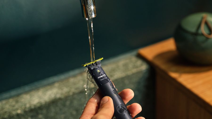 Golarka OneBlade jest całkowicie wodoszczelna (IPX7), dzięki czemu można ją łatwo umyć pod bieżącą wodą. Umożliwia golenie na sucho i mokro, także pod prysznicem — wybór należy do Ciebie. Nie wymaga stosowania pianki.