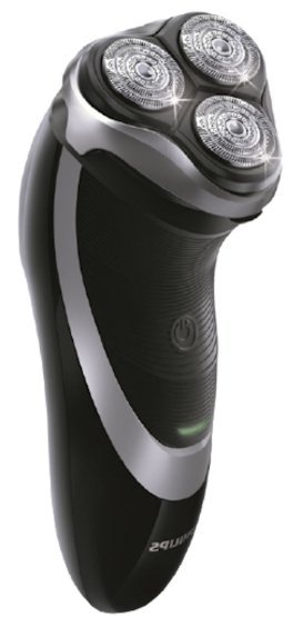 Golarka PT919/16, marki Philips, z linii PowerTouch, w kolorze czarno-srebrnym, z 3 ruchomymi głowicami, gumową rączką antypoślizgową oraz ze wskaźnikiem pełnego naładowania, ładowania w toku oraz niskiego poziomu baterii. Golarka zasilana jest akumulatorowo-sieciowo, posiada funkcję szybkiego ładowania, która umożliwia naładowanie urządzenia w ciągu 3 minut. Dzięki systemowi QuickRinse istnieje możliwość opłukania golarki w krótkim czasie.