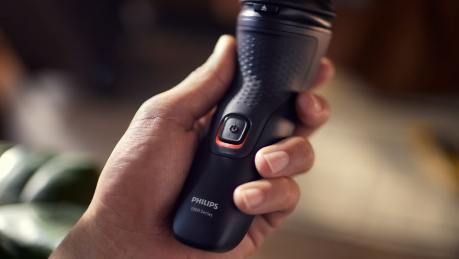 Głowica goląca otwiera się po naciśnięciu przycisku, co umożliwia wyczyszczenie jej pod bieżącą wodą.