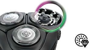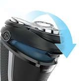 Głowice obracające się, poruszające i odchylające w pięciu kierunkach dopasowują się do kształtu twarzy, zapewniając dokładne golenie. Głowica styka się z zarostem pod idealnym kątem i dostosowuje się do krzywizn twarzy oraz szyi, gwarantując łagodny kontakt ze skórą.