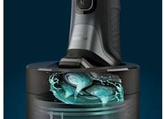 Wydajna stacja czyszcząca do golenia dokładnie czyści i smaruje golarkę w 1 minutę, zapewniając długotrwałą wydajność. Stacja czyszcząca jest 10 razy bardziej skuteczna niż woda. To najmniejsza na świecie stacja czyszcząca do czyszczenia, którą można bez problemu przechowywać w dowolnym miejscu.