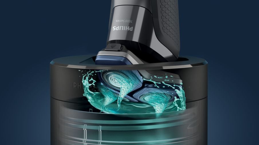 Wydajna stacja czyszcząca dokładnie czyści i smaruje golarkę w 1 minutę, zapewniając długotrwałą wydajność. Stacja czyszcząca jest 10 razy bardziej skuteczna niż woda. To najmniejsza na świecie stacja do czyszczenia, którą można bez problemu przechowywać w dowolnym miejscu.