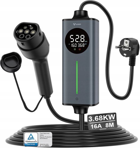 GONEO Ładowarka EV Typ 2 8m Schuko 3.68kW Regulacja Amperażu Mobilna 1Faza