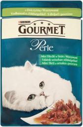Karma w saszetkach dla dorosłych kotów Gourmet Perle o wykwintnych smakach.