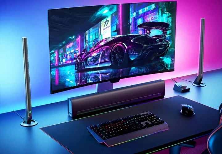 GOVEE H6047 to innowacyjne lampki gamingowe lightbar, dzięki którym możesz cieszyć się zaawansowanymi efektami świetlnymi podczas grania w ulubione gry. Za pomocą zaledwie jednego dotknięcia pokrętła (kontrolera) i prostych komend głosowych możesz sterować kolorem, jasnością oraz innymi parametrami świetlnymi, dzięki czemu gra będzie bardziej dynamiczna. W zestawie znajdują się dwie lampki ze zintegrowanym źródłem światła w postaci diody LED.