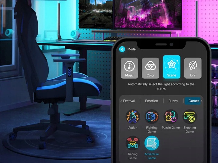 Lampki te są idealnym rozwiązaniem dla wszystkich, którzy czerpią radość z grania w gry. Dzięki dostosowanym efektom świetlnym, możesz ustawić je tak, aby stworzyły niesamowitą scenerię dla Twoich gier, poprawiając nastrój i atmosferę podczas grania. Dostosuj kolor, jasność, intensywność lub inne ustawienia światła i ciesz się dopasowanym stylem i tematem do Twoich ulubionych gier.