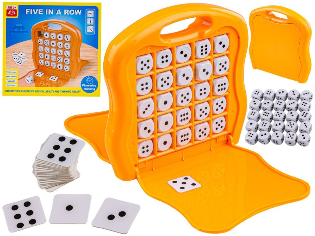 GRA LOGICZNA PLANSZOWA W WALIZCE 5 KOSTEK W RZĘDZIE 5 IN A ROW KOŚCI KARTY