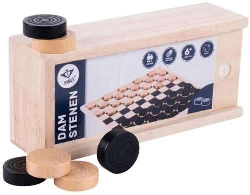 Warcaby czarne/naturalne drewno jesionowe 30 mm w drewnianej skrzyni z przesuwaną pokrywą.