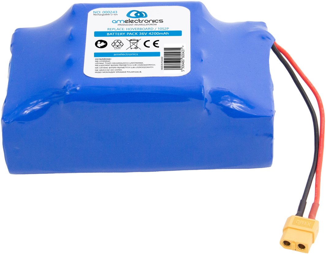 Bateria akumulatorowa do hoverboardów o napięciu 36V i pojemności 4,2Ah, stworzona z ogniw litowo-jonowych Sony, to doskonałe rozwiązanie dla entuzjastów elektrycznych desek. Dzięki swojej wysokiej wydajności i niezawodności, zapewnia długotrwałe zasilanie, co pozwala w pełni wykorzystać potencjał Twojego hoverboarda.