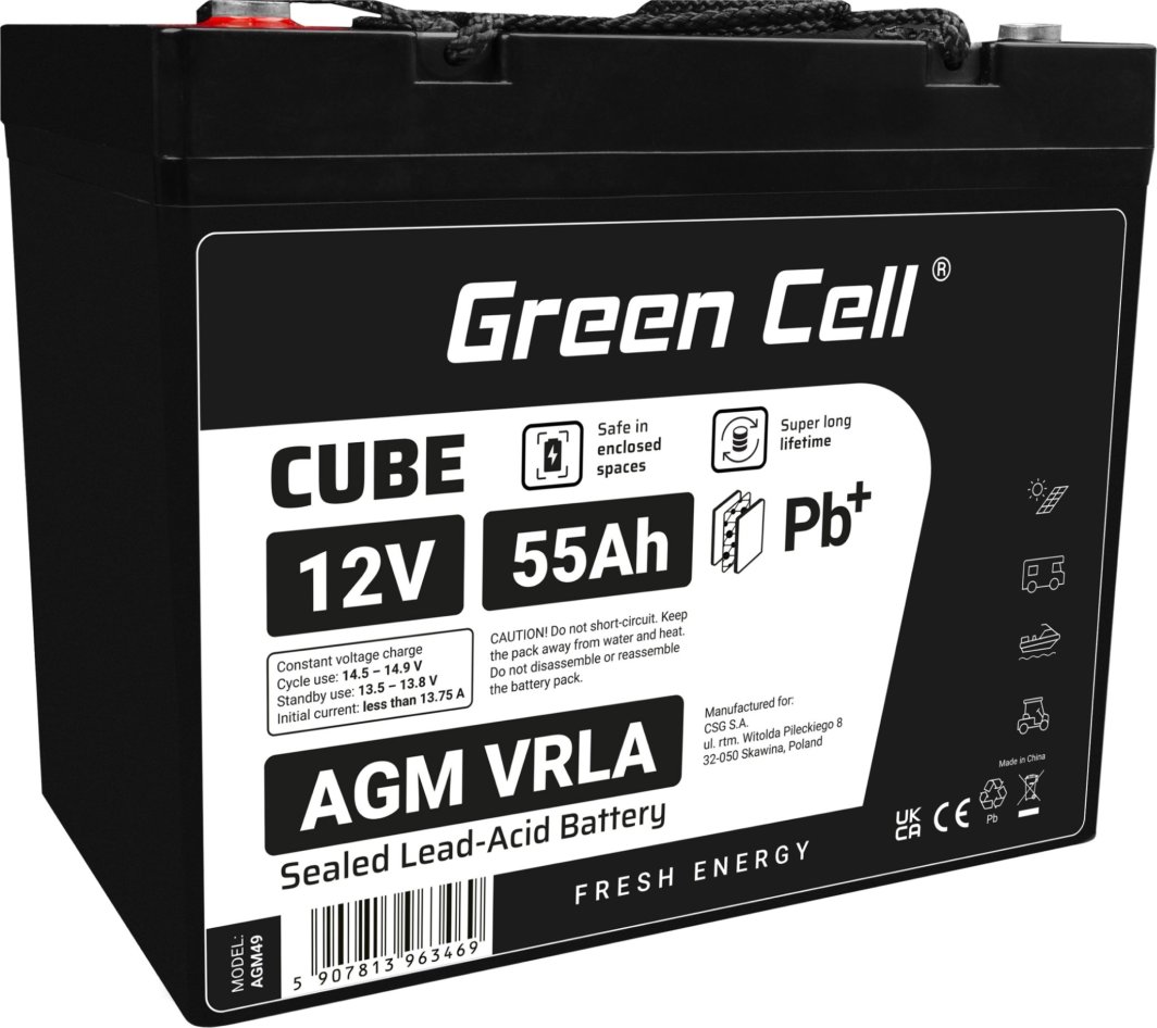 Green Cell Green Cell Cube AGM VRLA IP54 12V 55Ah bezobsługowy akumulator do kosiarki skutera łodzi wózka inwalidzkiego