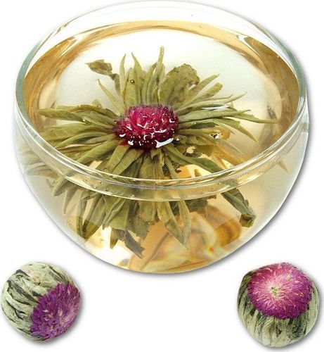 Ręcznie zwijana biała herbata z amarantowym kwiatem kulistej gomfreny.