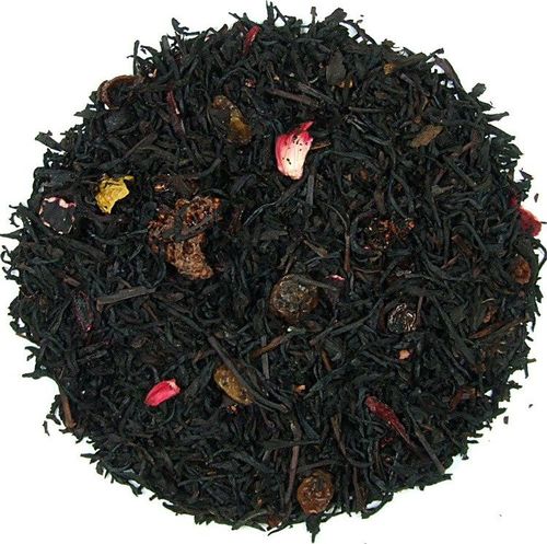 herbata czarna Ceylon BOP1, skórka róży, rodzynki, hibiskus, malina liofilizat, porzeczka liofilizat, aromat.
