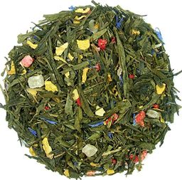 Dobrze skomponowana, bardzo smaczna herbata aromatyczna, której bazą jest Sencha, a dodatki, to owoce kandyzowane oraz płatki róży.