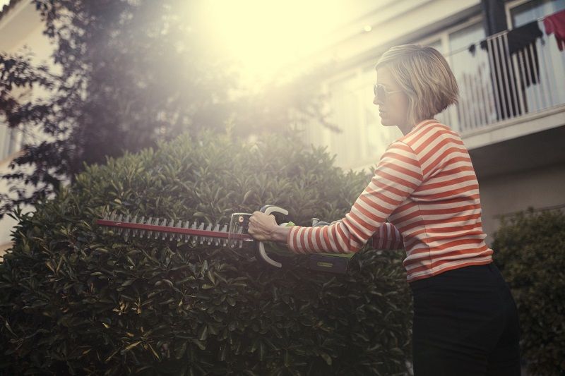 Dla zapewnienia maksymalnej wygody, uchwyt nożyc G24HT57 posiada antypoślizgowe wykończenie oraz innowacyjną funkcję obracania o 180° (z możliwością ustawienia kąta co 90°), co ułatwia manewrowanie i cięcie w różnych pozycjach oraz kształtach. Bezpieczeństwo użytkownika jest priorytetem, dlatego model ten wyposażono w system zapobiegający przypadkowemu włączeniu, przezroczystą osłonę chroniącą dłonie, system blokady w przypadku zablokowania lub zacięcia się ostrzy oraz skuteczny system antywibracyjny.