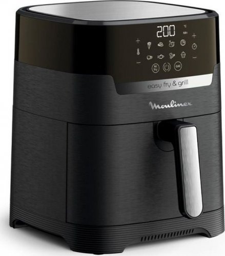 Moulinex EZ505810. Typ produktu: Frytkownica na gorące powietrze, Kraj pochodzenia: Chiny. Rodzaj konstrukcji: Pojedyńczy, Kolor produktu: Czarny, Typ kontroli: Dotyk. Typ wyświetlacza: LED. Moc: 1400 W. Szerokość produktu: 361 mm, Głębokość produktu: 270 mm, Wysokość produktu: 324 mm