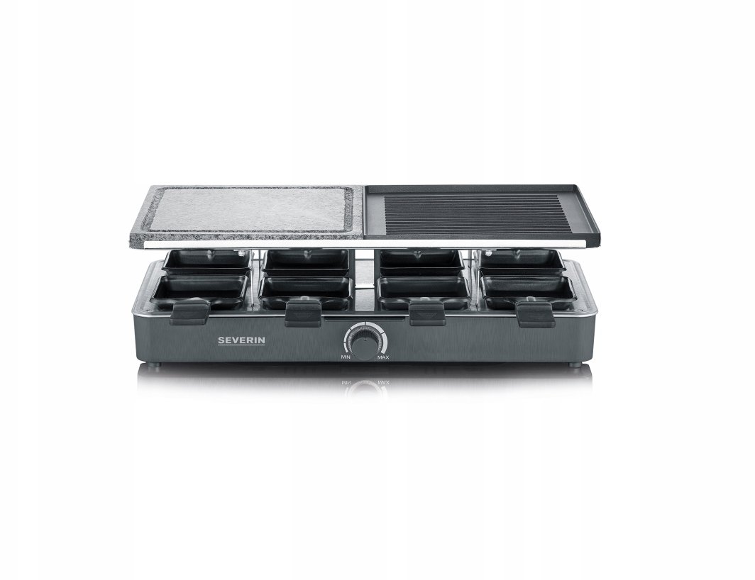 Grill z zestawem do raclette to specyficzny typ grilla elektrycznego, który może być użytkowany na bieżąco podczas spożywania posiłku. Pod klasyczną płytą grzejną znajduje się przestrzeń na kilka małych patelni, na których jednocześnie możemy przygotowywać składniki do potraw. Ten typ grilla sprawdzi się idealnie na imprezy lub spotkania ze znajomymi dzięki swojemu spektakularnemu wyglądowi oraz możliwości tworzenia przez gości własnych wariacji dań.