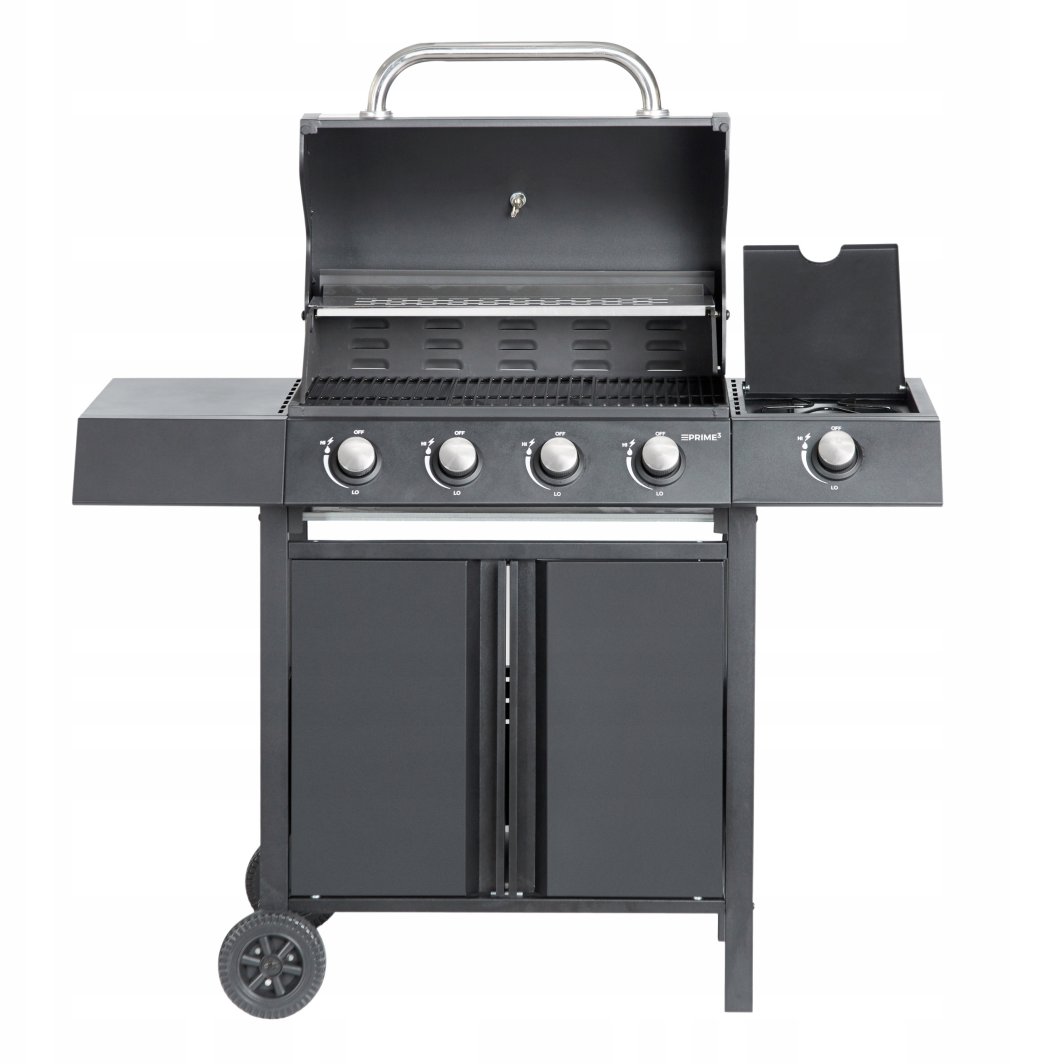 Grill Prime3 GGG41 jest wyposażony w system wielopalnikowy, który umożliwia tworzenie różnych stref temperatury. Każdy z pięciu palników ma niezależną regulację, co zapewnia pełną kontrolę nad procesem grillowania i pozwala na jednoczesne przygotowywanie różnych potraw.