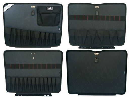 Walizka Gt Line wyposażona została w 2 wkłady narzędziowe obszyte jedno i dwustronnie kieszonkami. Wkład na dokumenty, 2 plastikowe pojemniki na małe drobiazgi. Dno walizki wyposażone jest w pojemnik z tworzywa sztucznego z przegrodami.