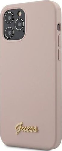 Guess Guess GUHCP12MLSLMGLP iPhone 12/12 Pro 6,1" jasnoróżowy/light pink hardcase Silicone Script Gold Logo