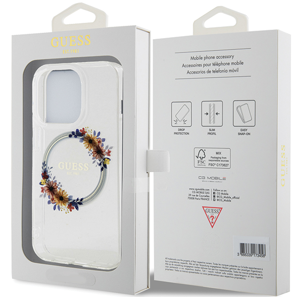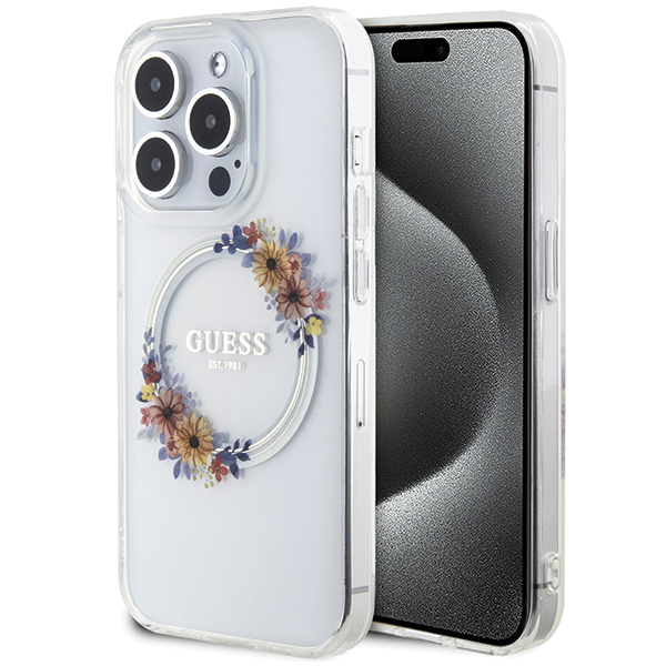 Guess GUESS GUHMP15XHFWFCT IPHONE 15 PRO MAX 6.7" TRANSPARENT HARDCASE IML FLOWERS WREATCH MAGSAFE standard