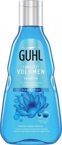 Seria zwiększająca objętość Guhl z niebieskim lotosem i kompleksem keratyny + power zapewnia kobietom o cienkich, pozbawionych życia włosach długotrwałą objętość i pielęgnuje bez ich obciążania.