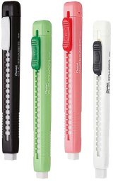 * niezbędne akcesorium na liście przyborów szkolnych * praktyczna gumka z prostokątnym, ergonomicznym korpusem * wymazuje błędy rysunkowe, a także błędy ortograficzne * nie pozostawia śladów i jest przeznaczona do każdego rodzaju papieru * możliwość wymiany wkładu * oryginalna dzięki swojemu kształtowi długopisu z łatwością znajdzie swoje miejsce w szkolnym piórniku wśród długopisów, ołówków, pisaków, zakreślaczy, nożyczek i kleju w sztyfcie * gumka idealnie nadaję się do użytku w biurze, w szkole jak i w domu * prosty mechanizm wysuwania gumki ułatwia jej użytkowanie * obudowa pozbawiona materiałów PVC * gumka w kolorze białym * kolory obudowy: czarny (symbol: ZE80-A), seledynowy (symbol: ZE80-K), różowy (symbol: ZE80-P), biały (symbol: ZE80-W) * jednostka sprzedaży 1 sztuka * firma PENTEL powstała pod koniec lat czterdziestych dwudziestego wieku w Japonii - jej nazwa jest ściśle związana z branżą papierniczą i biurową, w której działa i funkcjonuje od wielu lat - połączenie słów PEN (z ang. pióro) i TEL (z ang. opowiadać) określa genezę i cel powołania marki do życia - tworzenie z pasją artykułów do pisania, rysowania i malowania, to to do czego została powołana firma PENTEL
